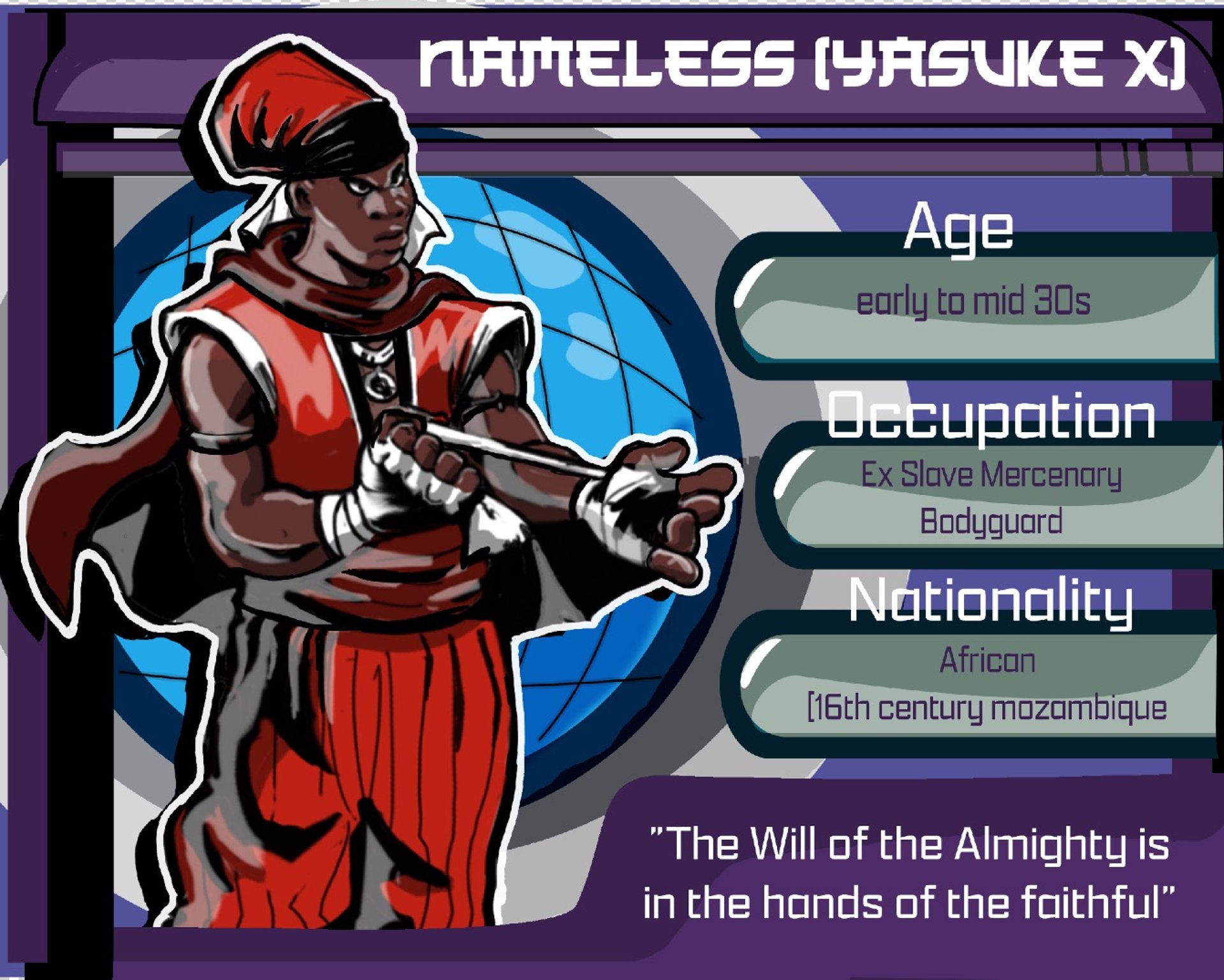 A tall mercenary who once enslaved makes his to there shores and effects the course of history forever once he coronates the nameless mercenary YASUKE: THE BLACK SAMURAI